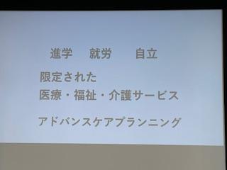 また、来年の法改正を見据えて「医療的ケア者」の定義を定める調査など、今後の国の動きについても触れた説明がありました。移行期、卒後、就労、住まいや権利擁護など課題は変化します。
